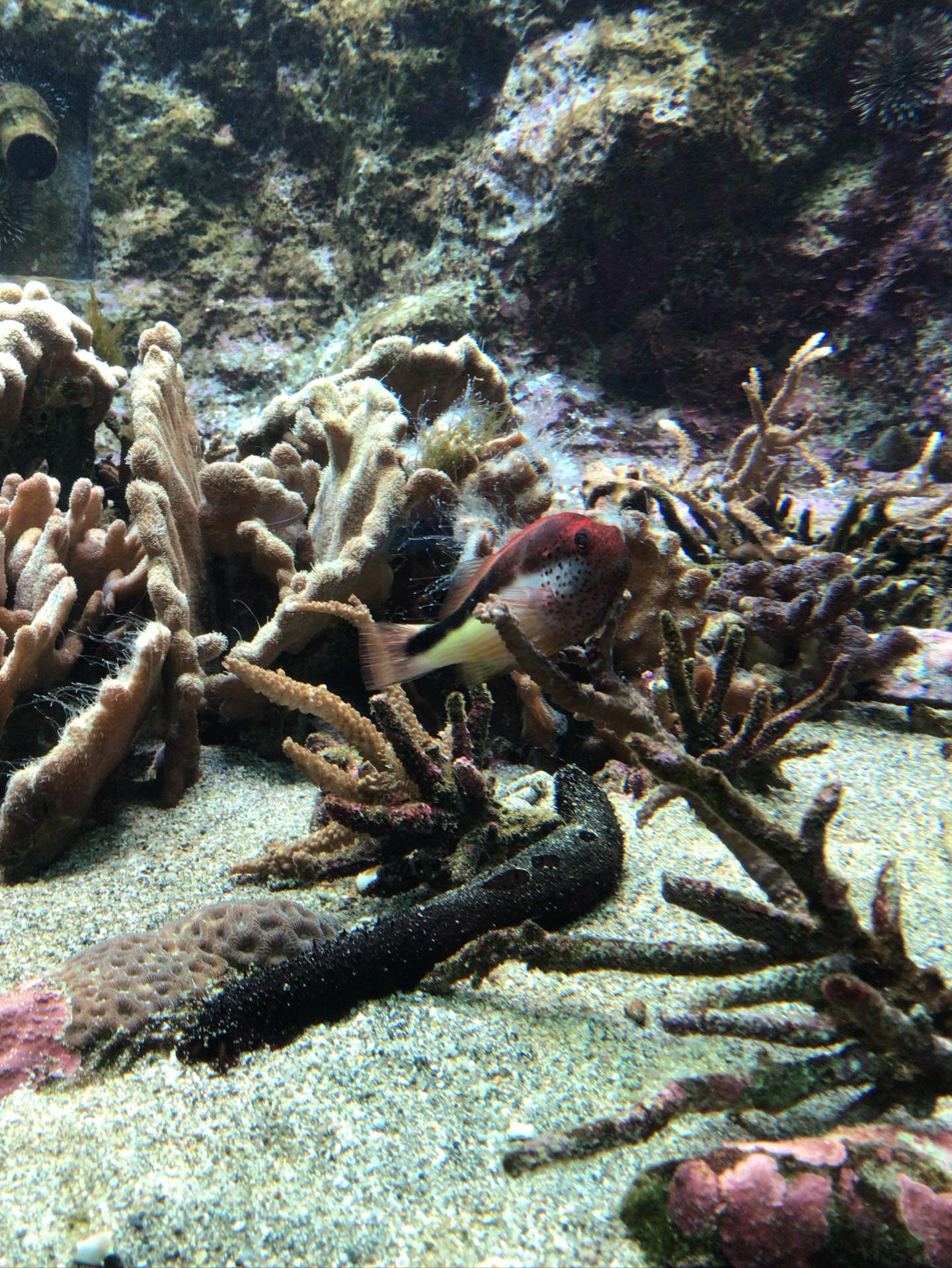 河口のコーナーのクロホシマンジュウダイのいい顔が撮れました!何か話しかけてくれているような口元がなんともいいですね。採集してから2年目の個体です。体の斑点も綺麗にでて、あと各鰭のオレンジ色が無くなれば大人の体色です。そしてその体no地色は銀色に輝やくんですよ。