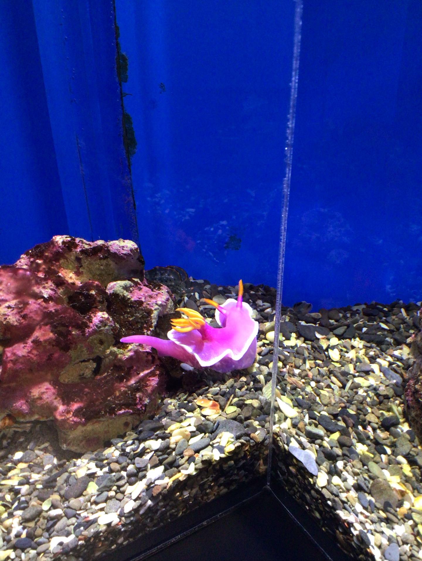 サンゴコーナーのシコロサンゴの展示されている水槽で、最近ホシゴンべがエダサンゴに乗ってこちらを覗いています。この二つに分かれた場所がお気に入りのようですよ。左右の胸鰭で体を支え、正面を見据えています。でも、ようく観察していると、眼は絶えずいろいろな方向に向けて動かしていて、警戒はしているようです。是非、見つけてにらめっこをしてみてください!