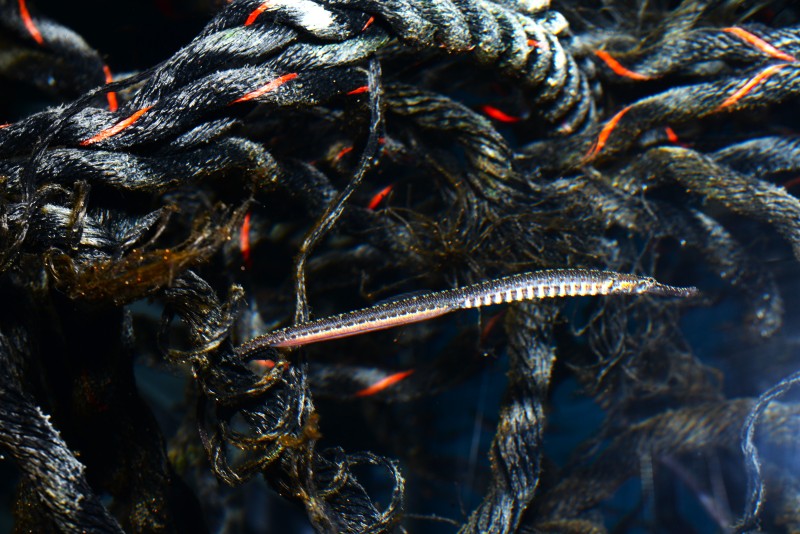 足摺の海のコーナーのカワヨウジのオスの保育嚢がオレンジ色に色づき、メスに産卵するようアピールしているようです。ヨウジウオの仲間もタツノオトシゴと同じように、メスがオスのお腹の保育器に卵を産んで、オスが卵を守り稚魚を産出します。うまく抱卵して可愛い子どもたちを産み出してくれるといいのですが。
