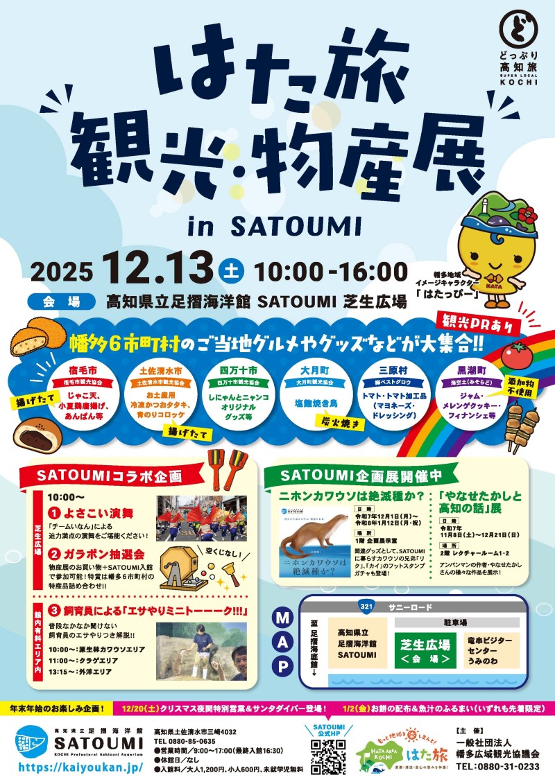 SATOUMIでは12月13日(土)午前10時より、幡多6市町村のご当地グルメやグッズが集合する「はた旅 観光・物産展 in SATOUMI」を開催いたします。