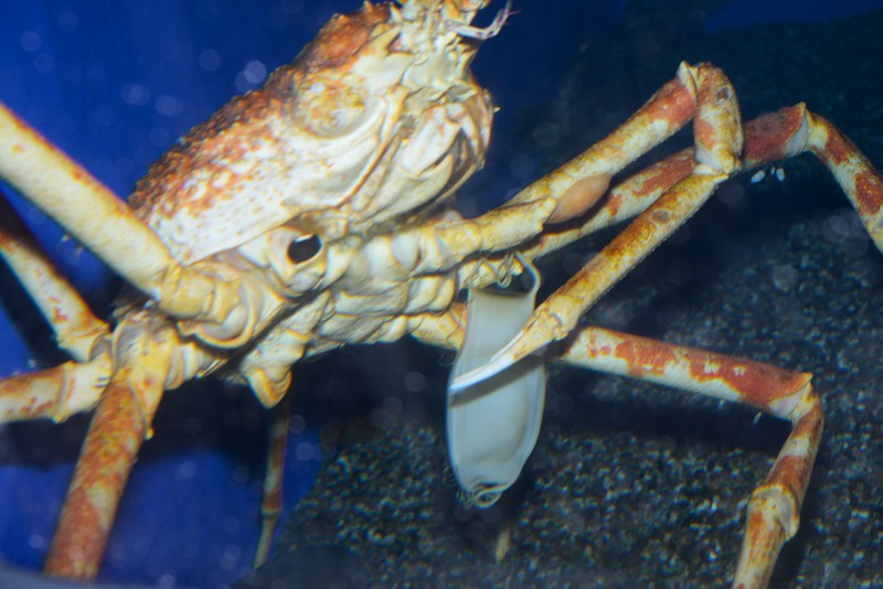 数日前にSATOUMIのインスタグラムで紹介されていた、ヒトデを背負ったオオホモラ、今朝もまだ背負ったままです。このオオホモラ、いろいろなものを背負って身を守っているようですが、今回背負われたヒトデ君は、いい迷惑でしょうね。背中では管足を動かして元気そうですが…