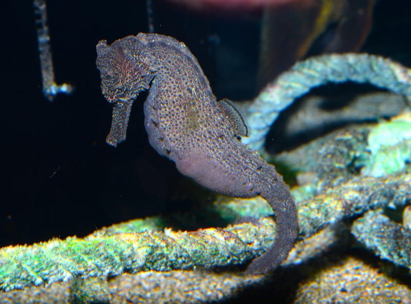 新年おめでとうございます。本年もSATOUMIをよろしくお願いいたします。新年最初の魚は、干支にちなんで黒海馬・クロウミウマです。長い顔が馬なのでしょうか。SATOUMIのエントランスと足摺の海のコーナーで展示されています。この仲間を乾燥させたものが漢方薬として需要が高く、各地で数が減っているところからワシントン条約で商取引が規制されています。