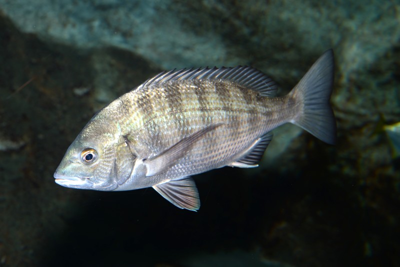 竜串湾大水槽にはサンゴ礁に住む熱帯性の魚たちと、温帯に住む釣り人が熱中するイシだいやグレことメジなどが同居しています。その中でたまに出くわし目を引く魚が何種かいます。その一種がコショウダイです。稚魚の時は全身真っ黒でゴミに擬態して海底近くを漂っています。それが大きくなると写真のように!若い時はもう少し寸詰まりなのですが今はすらっとした体になっています。水槽には1匹しか展示されていません、是非探してみてください。